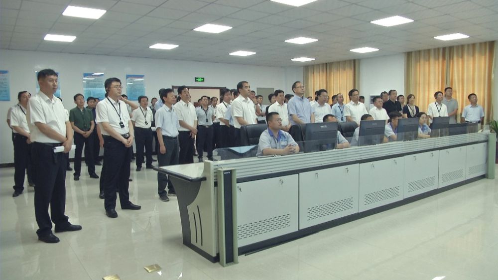 图为参加济宁市城乡供水一体化暨农村饮水安全两年攻坚行动现场推进会参会人员在嘉祥观摩城乡供水一体化管理信息中心