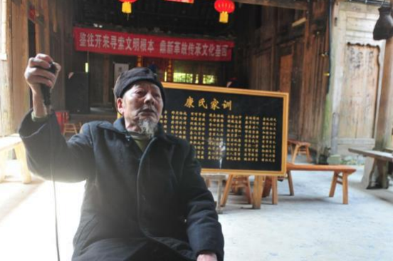 在二官寨村旧铺组康家三百年来生活的老宅院中,一面金黄的大旗上“康家大院”四个字迎风飘扬,大旗下一排古色古香的土家吊脚楼甚是气派,“云程初步”金字红底大匾高悬中堂。提起康氏家族的家训,了解这里的人们无不竖起大拇指。